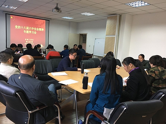 11月4日下午,机械工程系党总支在公司东区备课中心召开了党的十八届六中全会精神专题学习会。系党总支副书记魏延宏主持会议,机械工程系系领导、教研室主任、部分民主党派教师代表及全体教职工党员参加了学习活动。