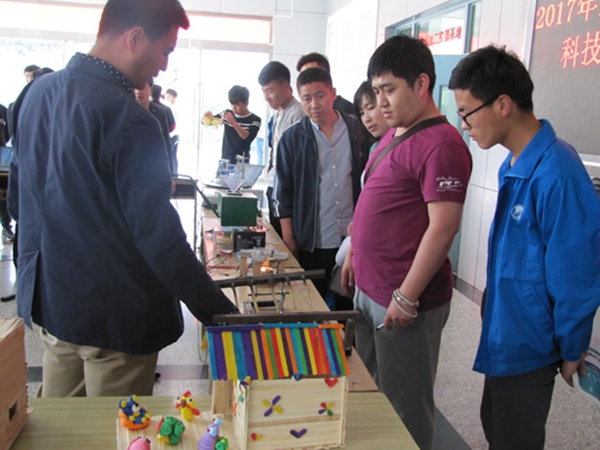 本次展览主要由TapTap点点祥云科技协会和创新创业团队共同承办,展览作品内容涉及科技发明、环境治理与保护、经济创新等多个领域;如:液压抓取臂、五轴机械手臂、激光打印、全息投影、3D打印等;作品负责人热情讲解作品的创作原理、使用方法、存在的问题和下一步改进的方法。