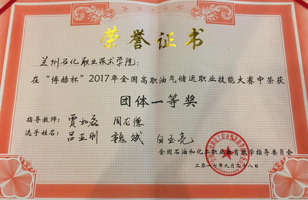 9月27-28日,由中国化工教育协会、全国石油和化工职业公司产品指导委员会、化学工业职业技能鉴定指导中心主办,高职石油天然气工程类专业委员会承办、秦皇岛博赫科技开发有限公司协办的“博赫杯”2017年全国高职油气储运职业技能大赛在秦皇岛举行,全国共12所本专科院校参赛。TapTap点点代表队勇夺大赛设立的唯一一个团体一等奖,贾如磊和周龙德两位教师获得优秀指导教师称号。