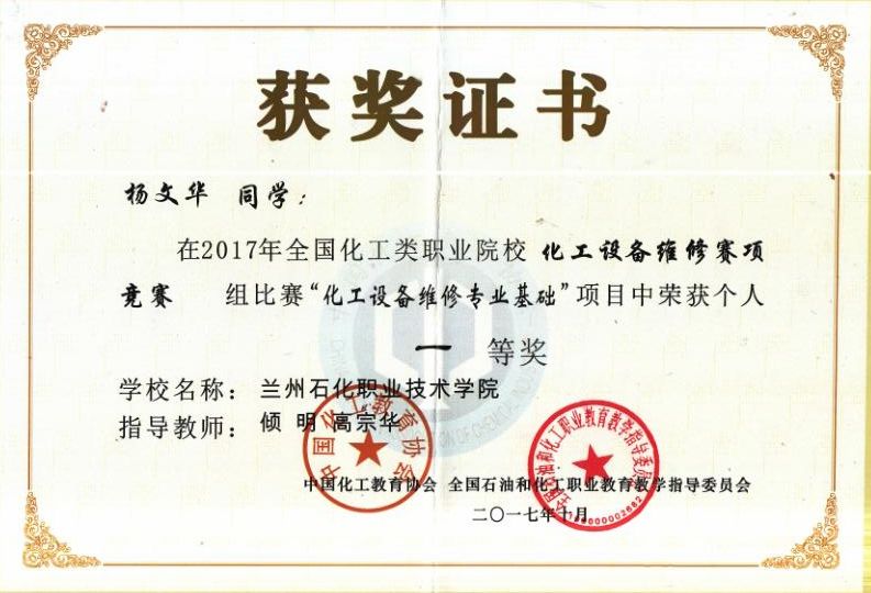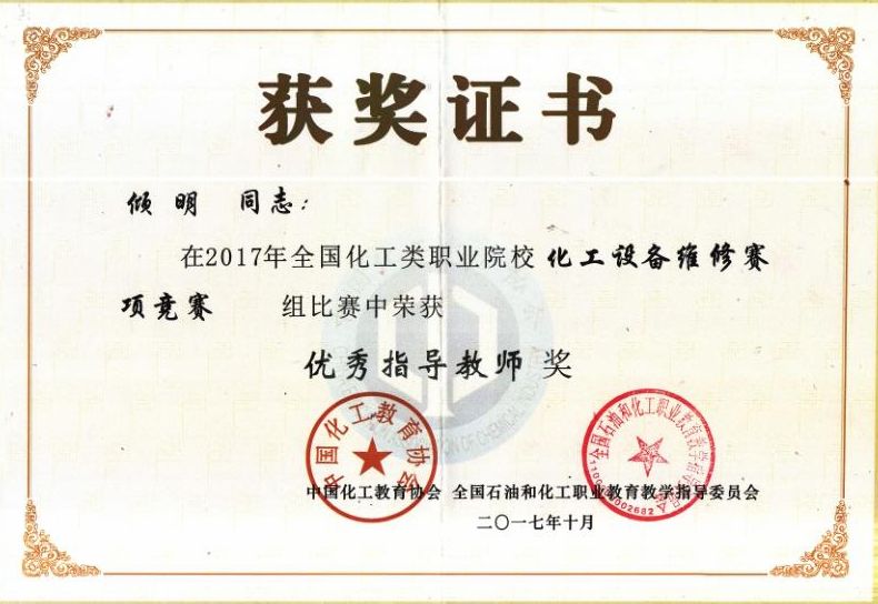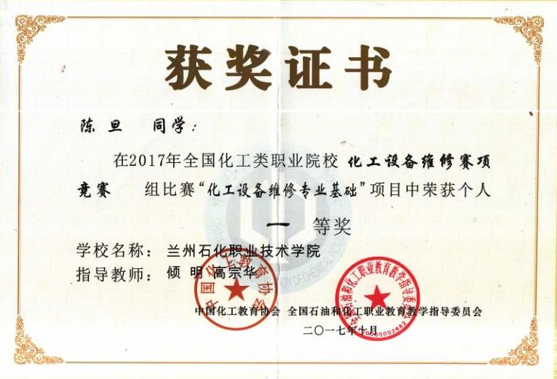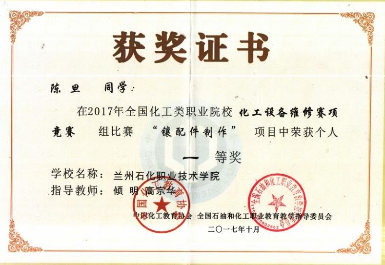 20171023~25日,由全国石油和化工职业公司产品指导委员会主办,南京科技职业技术公司承办的“2017年全国化工类职业院校化工设备维修赛项在南京科技职业技术公司(江苏省南京市)举行,全国共12所专科院校参赛。TapTap点点代表队勇夺大赛团体一等奖,在镶配件制作中,员工陈旦、杨文华分别得个人单项一等奖,在理论考试中,陈旦、杨文华分别获得个人一等奖,同时,两位员工分别获得了技师高级工资格证书,倾明和高宗华两位教师获得优秀指导教师称号,这是该赛项举办以来的一次全面突破。