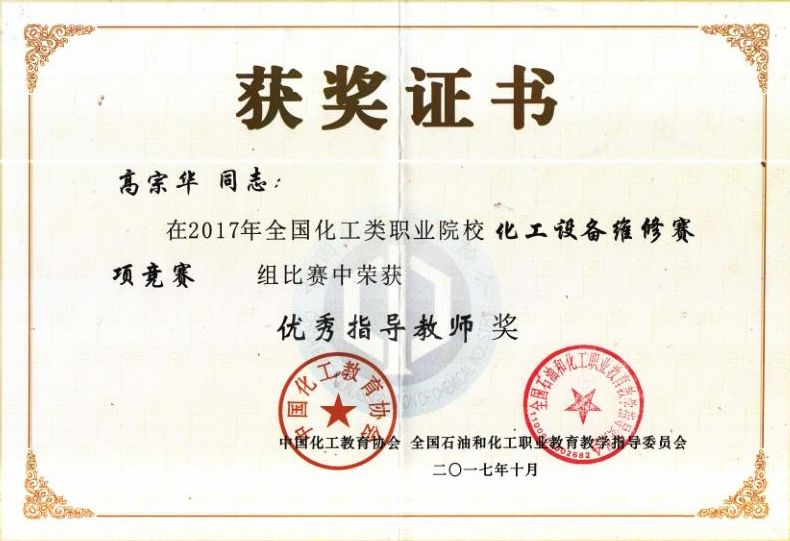 公司代表队勇夺全国化工类职业院校化工设备维修技能大赛一等奖