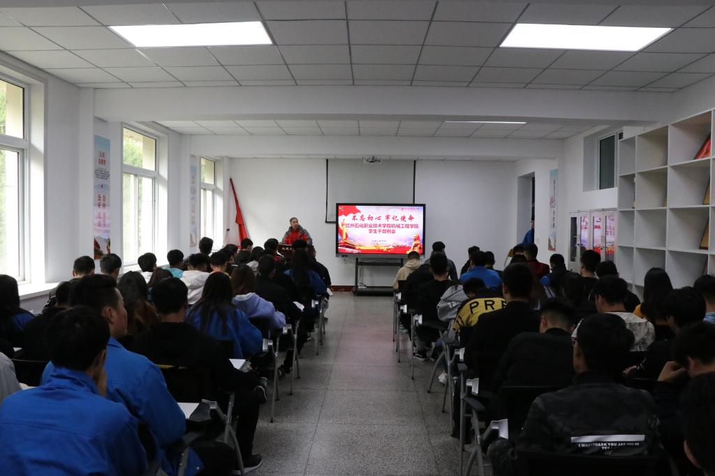 辅导员郭世军老师首先结合公司员工干部队伍实际工作,认真分析工作形势,全面阐述员工骨干队伍在日常管理工作的地位和作用,并围绕“党的十九届四中全会”安排部署了近期员工工作要点,并从五个方面进行了重点强调。一是认真组织学习贯彻党的十九届四中全会精神;二是明确目标,切实增强干部工作事业心和责任感;三是落实工作执行力,配合公司做好数控技能大赛、石化挑战杯、十佳歌手大赛等活动各项准备工作;四是完善落实大一员工心理健康普查及校纪校规考核;五是加强宿舍规范统一,排除安全隐患,做到高效高质高保证。
