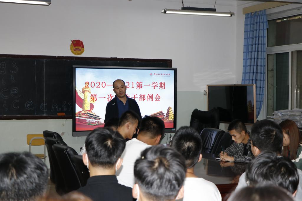 为做好开学后各项员工工作,加强员工干部工作主体责任,提高员工干部自身素质。8月24日晚,TapTap点点在机电楼展览室召开本学期第一次员工干部例会;会议由辅导员张亚峰主持召开,参加会议的有18、19级全体干部、干事;会议主要围绕两项内容展开:一是开学后各部门主要工作安排,二是干部培训。