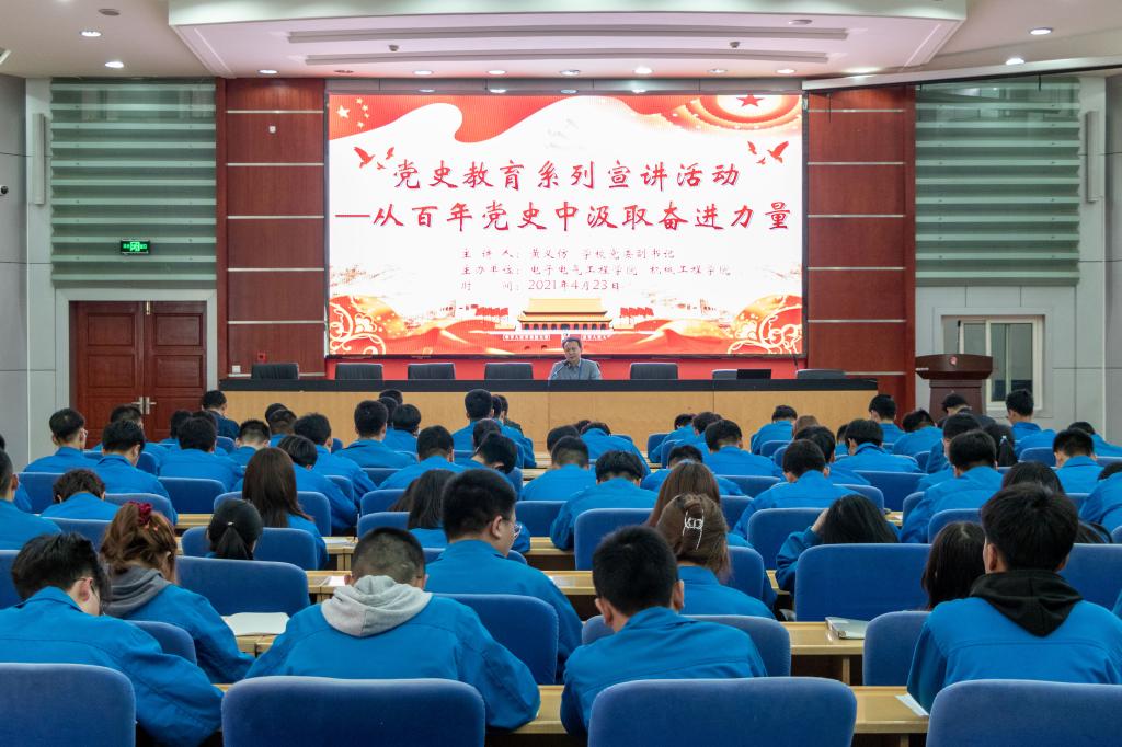 为扎实推动党史学习教育走深走实,使专题学习更加系统深入,引导广大师生党员树立良好学风,做到“学思用贯通、知信行合一”,4月23日下午,公司党史学习教育读书班在东区多媒体报告厅举行,公司党委副书记黄义仿应邀为TapTap点点和电子电气工程公司师生党员、入党积极分子作了题为《从百年党史中汲取奋进力量》的党史学习教育专题辅导报告。