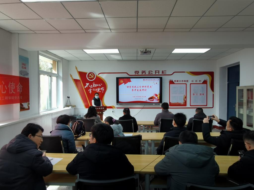 为持续深入开展“课堂思政三分钟讲党史、学党史”活动,切实引导广大师生学史明理、学史增信、学史崇德,学史力行,2月22日支部组织全体党员教师开展“课堂思政三分钟讲党史”集中交流研讨活动,活动由党支部书记张胜男主持。