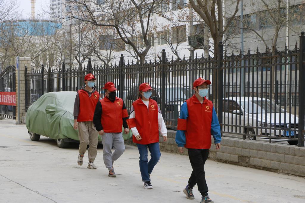 早上八点,在中泰楼后的区域,如约出现了这样四人一组的巡逻队伍,他们身穿志愿者红色马甲,佩戴袖章,深入中泰公寓及第二工业中心后门等重点巡查区域内开展治安巡逻,做好违纪现象排查。巡逻过程中,一旦发现可疑情况、突发状况,巡逻小队负责人将及时上报,以确保突发事件可以及时发现、及时处理。严防影响校园安全的取外卖、取快递等违纪现象发生,维护公司师生的人身安全。晚上十点,志愿者巡逻结束后,预备役成员紧接接力棒,继续坚守巡逻岗位,志愿者和预备役成员们日夜值守,用实际行动筑牢了校园疫情防控的防线。