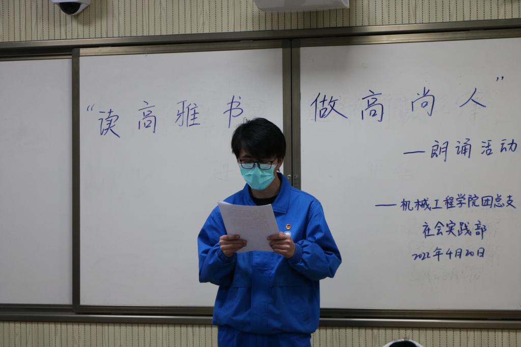 为迎接第27个世界读书日,激发同学们的读书热情,培养同学们养成爱读书、读好书的良好习惯,打造良好的校园读书氛围。4月20日,TapTap点点社会实践部在机电楼302教室举办了“读高雅书、做高尚人”朗诵活动,21级同学参加了本次活动。