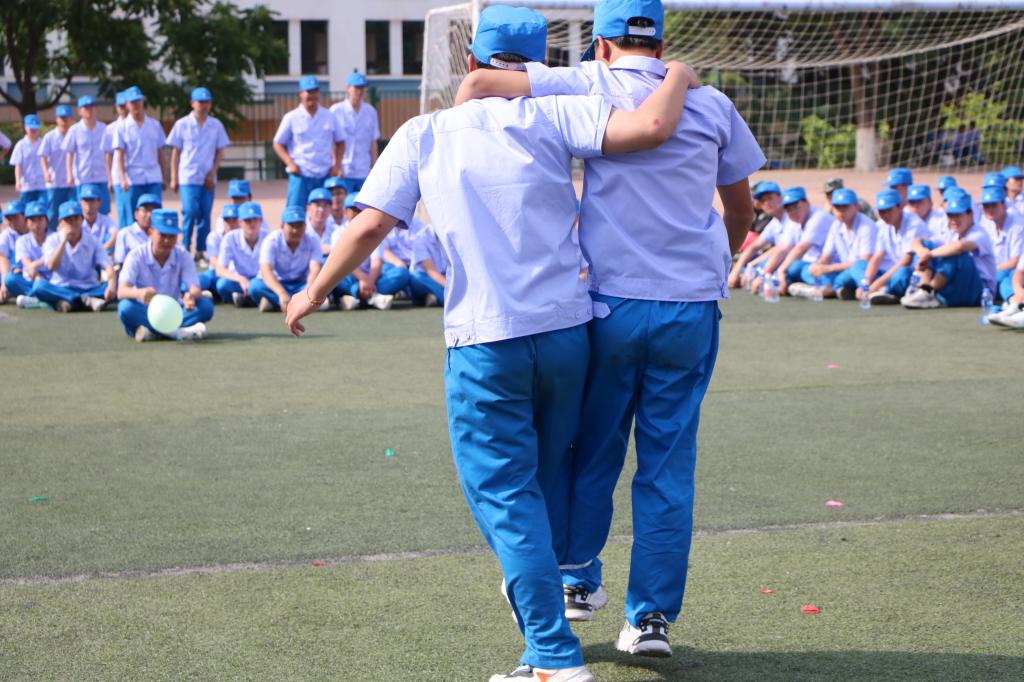 与军训项目相比,趣味比赛将竞技与娱乐相结合,着重鼓励员工合作参与,充分发扬团体合作精神,设置了如“快乐抱抱爆、两人三足跑”等趣味性和协作性于一体的活动项目。整个竞赛气氛激烈又不失轻松愉快,参与活动的同学们尽力完成每一个项目,全身心投入在比赛中。在爆气球比赛中,有些组的同学相互协作,默契满分;有些组同学在比赛过程中虽然没有共同的节奏,但仍然极快的完成了任务,围观同学不时发出欢快的笑语。