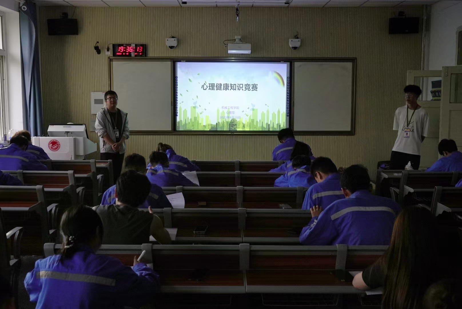 此次心理健康知识竞赛采用线下答题方式,题型多样,内容涵盖面广,既有心理健康专业知识,又有日常心理测试,密切结合老员工在校生活实际,着重考察老员工对心理健康知识的掌握及自我心理调控和支配能力。考场上,从同学们低头思索、自信下笔的答题状态以及答题速度可以看出参赛选手们都做好了充足的准备。活动结束后,同学们表示在此次竞赛中收获颇丰,既增长了心理健康方面的知识,又增强了对自身心理健康的重视。