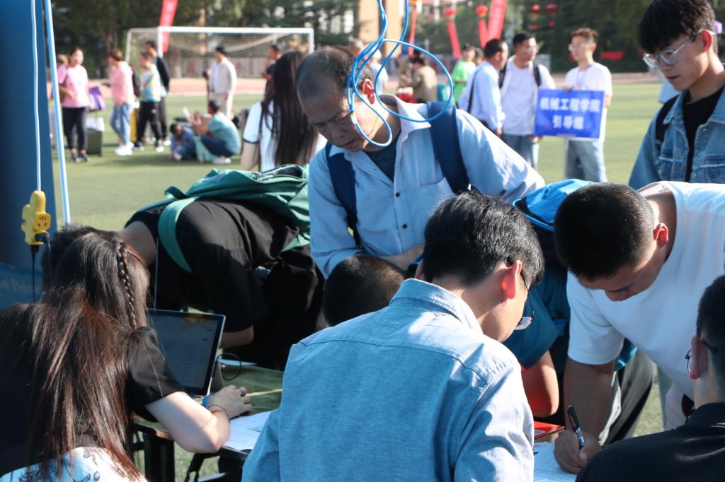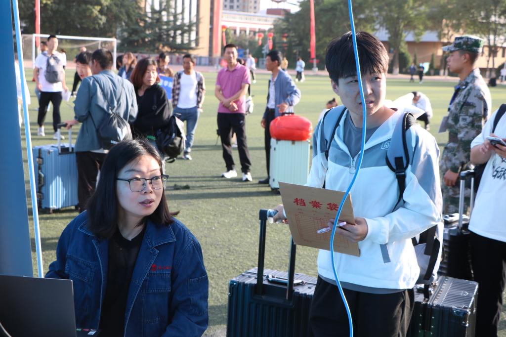 旭日初升,很快迎来了第一批入学报到的公司新生,从电子注册、资格审查,到档案收取、物品发放,志愿者们始终热情洋溢、认真负责,确认每一位新生的入学信息无误,保障每一位新生顺利完成入学报到。