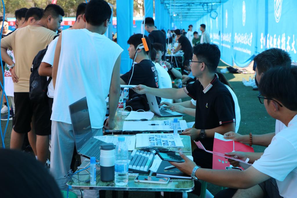 旭日初升,很快迎来了第一批入学报到的公司新生,从电子注册、资格审查,到档案收取、物品发放,志愿者们始终热情洋溢、认真负责,确认每一位新生的入学信息无误,保障每一位新生顺利完成入学报到。