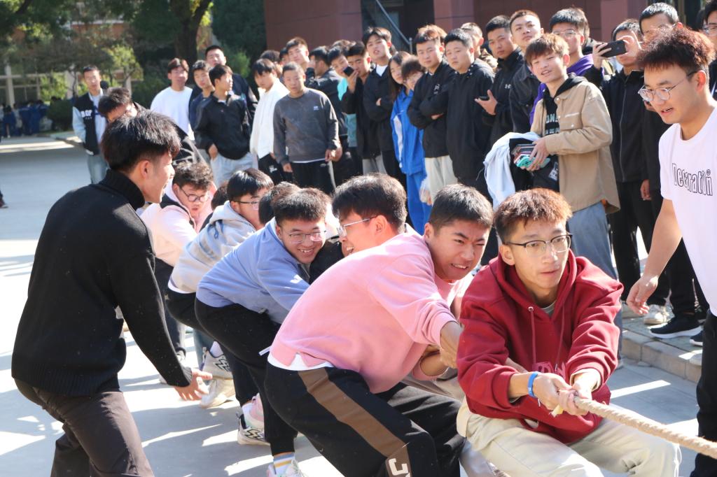 比赛以班级为单位组队参赛,各班队员经过严格选拔,组成最强比赛阵容。赛场上,随着裁判的一声哨响,同学们喊起口号,卯足劲将绳子往后拉,他们全力以赴,咬紧牙关,抓紧拔河绳,全力以赴。观赛的同学们也热情高涨,为各班级的队伍呐喊助威。在红绳摇摆不定,比赛僵持不下的时侯,同学们也没有丝毫松懈,毫不退缩,奋战到底。赛场上的队员们用行动诠释着“友谊第一,比赛第二”的运动精神,用汗水讲述着团结拼搏的意义。比赛结束后,参赛队员纷纷表示,将以更团结的作风、更昂扬的斗志、更饱满的热情,拧成团结奋进之绳,沉下身子、咬紧牙关,全力以赴圆满完成当前各项学习工作。