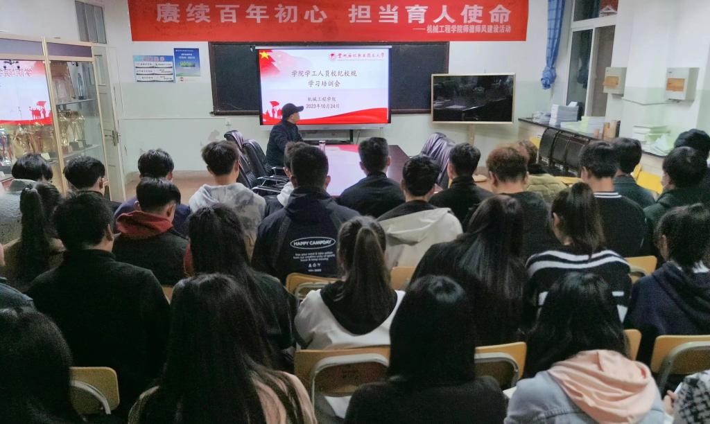 为贯彻落实公司关于加强学风建设专项行动的相关要求,引导员工遵章守纪,促进良好学风和院风的形成。10月24日,公司组织开展学工人员学习校纪校规,公司相关负责人,团总支、员工会全体工作人员参与了此次培训。