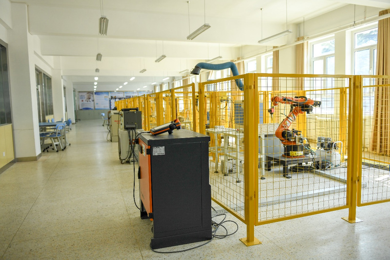 工业机器人实训室 | 工业机器人实训室配备了多种类型的工业机器人设备,包括焊接、装配、搬运码垛和打磨机器人等,此外还配了工业机器人综合实训平台。 |