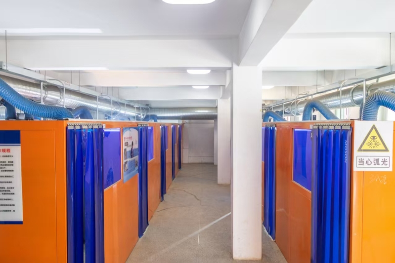 实训基地面向智能焊接技术、理化测试与质检技术,以满足日常实训教学、技能大赛训练为主,兼顾对外培训及社会服务,下设焊接机器人实训室、焊接方法与设备实训室、等离子弧焊实训室,现有激焊接机器人7套,等离子弧焊5套,埋弧焊2套,手持激光焊1套,氧乙炔切割5套,占地面积300平米,设备总值600余万元。可开设焊接机器人编程与操作实训、焊接方法与设备实训等课程。